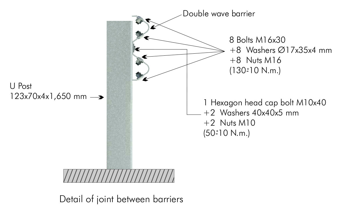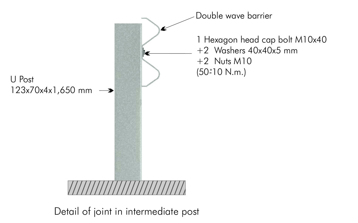 Single metal barrier reduced for lateral side. System formed by a double wave barrier and U posts 2 metres apart.