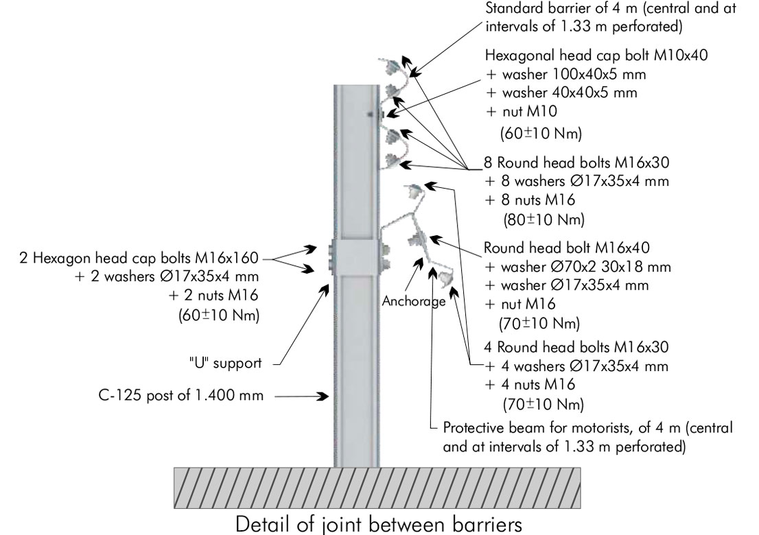 | 10 | Protective beam for motorist of 4 m (central and at intervals of 1.33 m perforated | 1 |