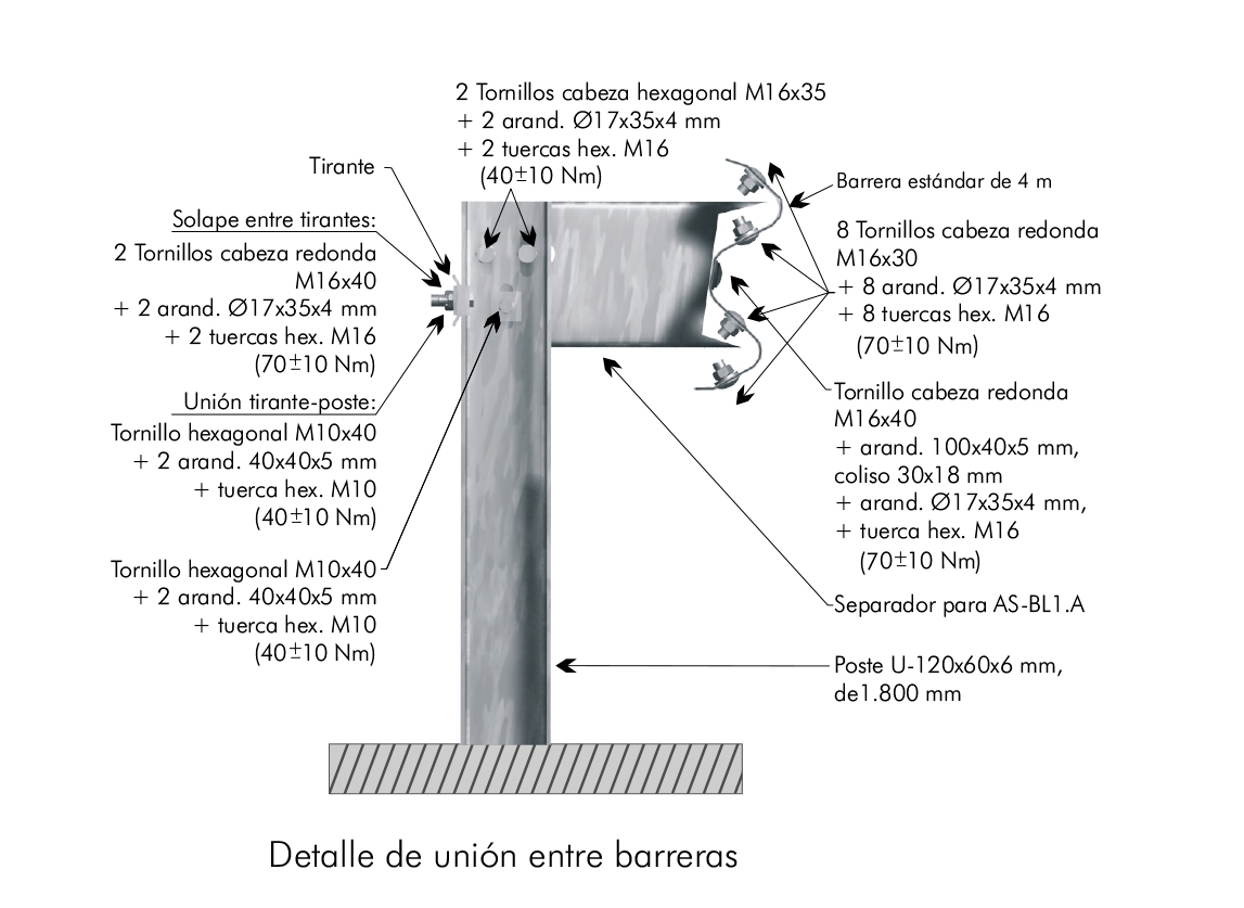 | 8 | Tornillo cabeza hexagonal M10x40, con tuerca | 4 |