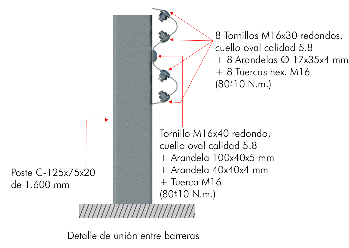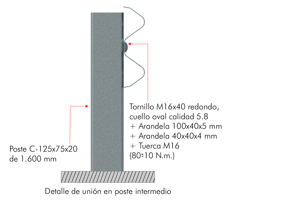 | Nivel de Contención | N2 | Anchura de Trabajo (W) | W2 | Clase de Severidad | A | Deflexión Dinámica (D) | 0,6 m |