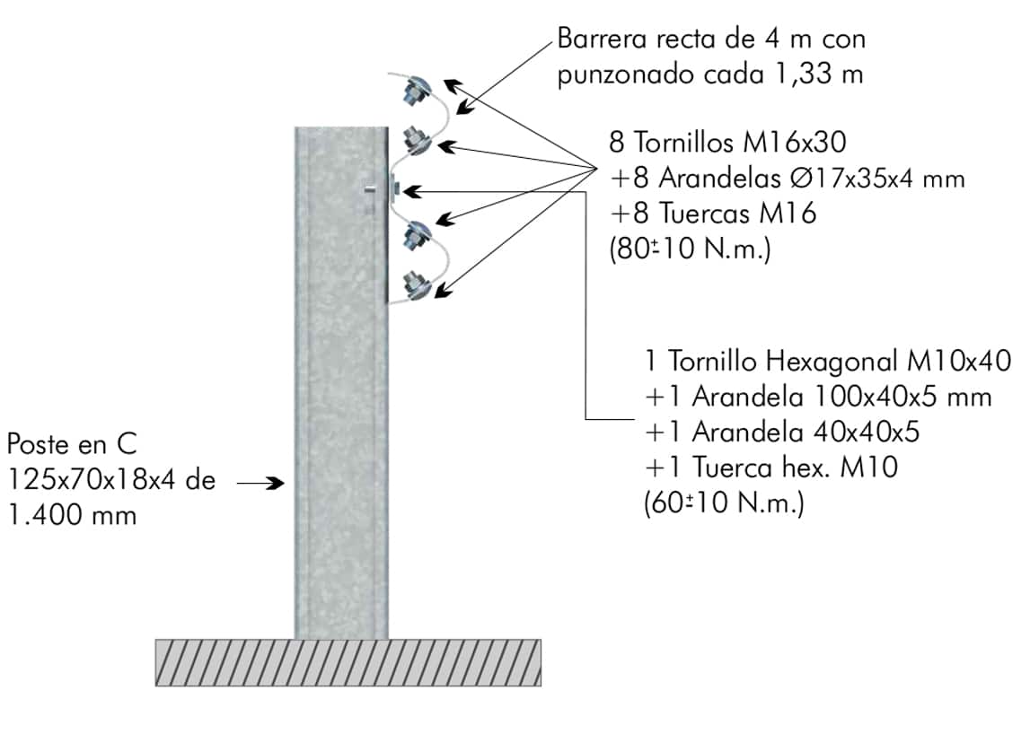 1   Barrera recta de 4 m con punzonado cada 1,33 m 1