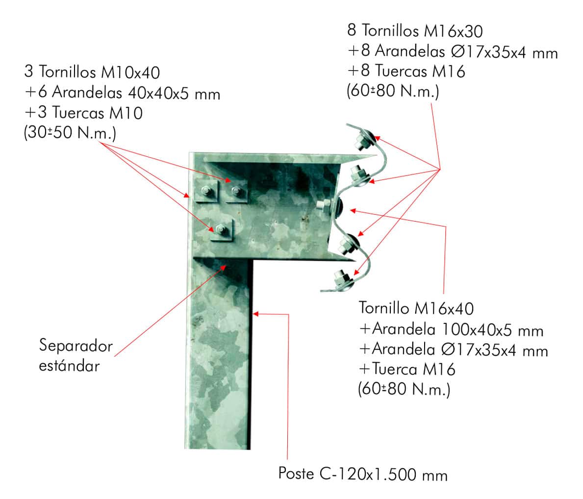 Componentes para tramos de 4 metros