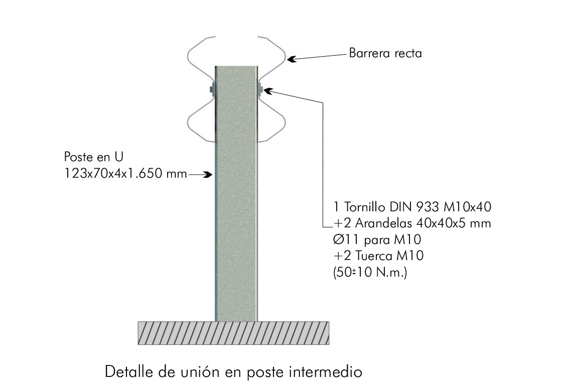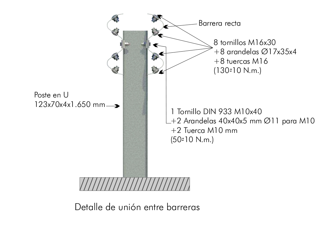 | Nivel de Contención | H1 | Anchura de Trabajo (W) | W4 | Clase de Severidad | A | Deflexión Dinámica (D) | 0,9 m |