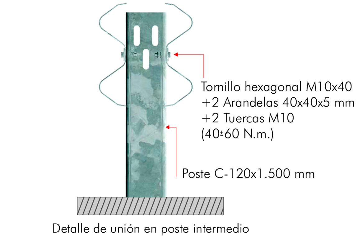 | Nivel de Contención | N2 | Anchura de Trabajo (W) | W2 | Clase de Severidad | A | Deflexión Dinámica (D) | 0,6 m |