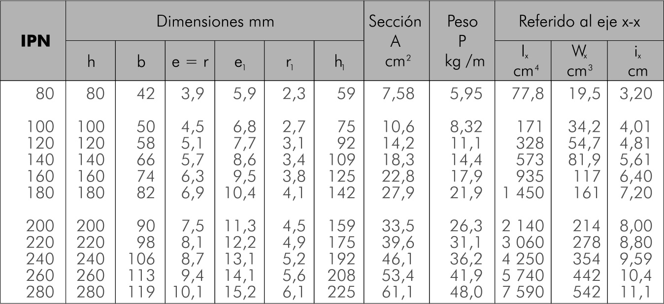 El tipo de IPN a utilizar en cada caso vendrá determinado por las hipótesis de cálculos definidas en la norma UNE-EN 12899-1.