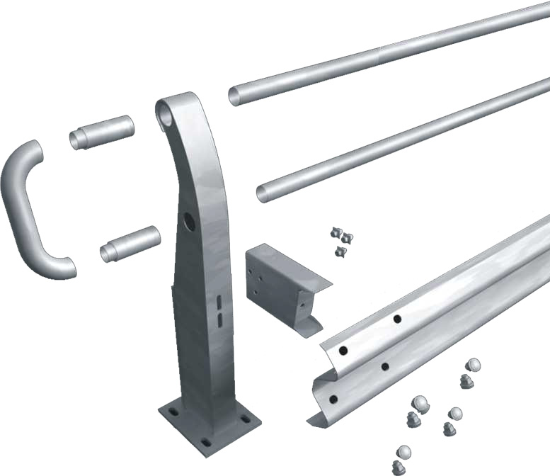 El poste está preparado para dos tubos y una barrera, tanto reducida como con su separador; su altura es de 1.200 mm. Se puede fabricar con placa base o sin ella.