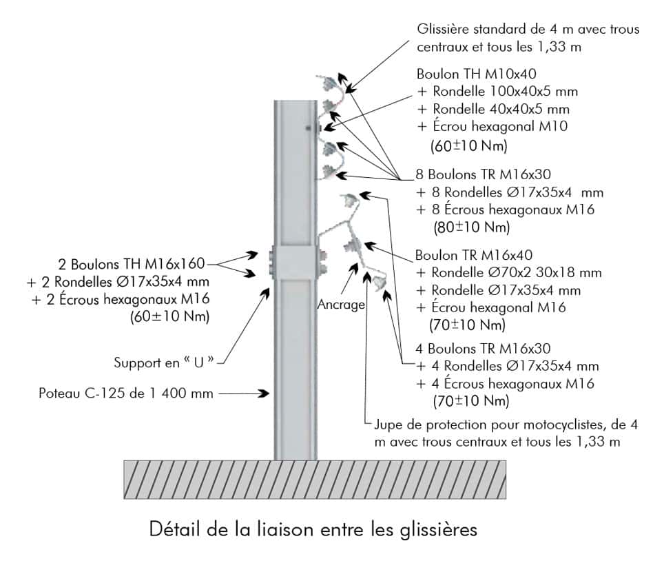 | 10 | Jupe de protection motocyclistes. Dispositifs AS-SM6.A/B avec trous centraux et tous les 1,33 m |
