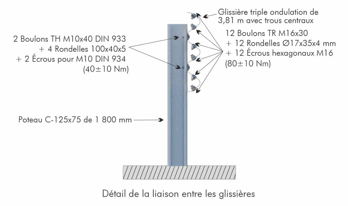 | 1 | Glissière triple ondulation de 3,81 m avec trous centraux | 1 |