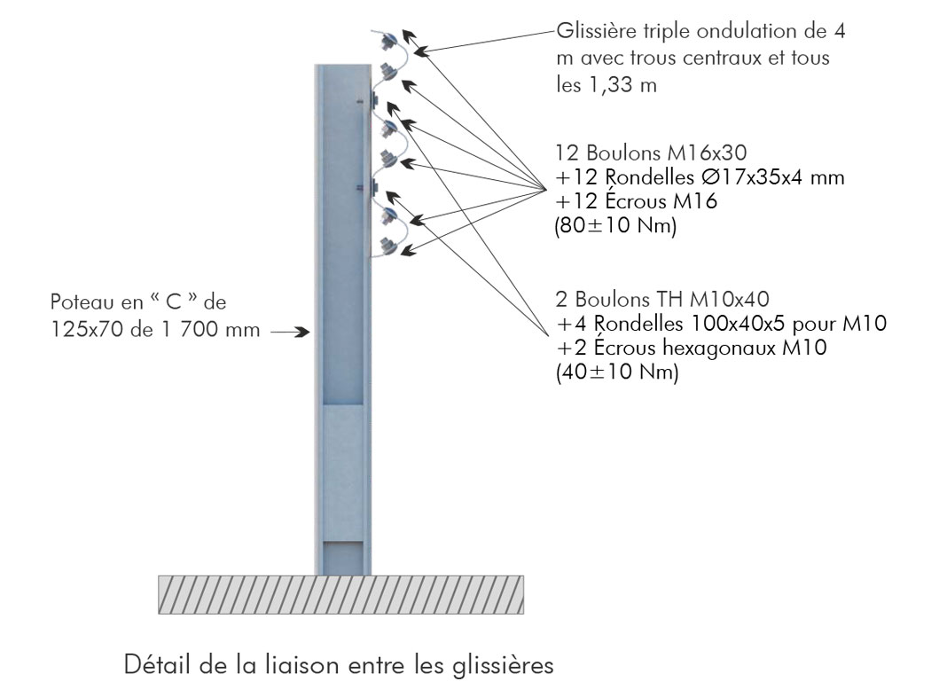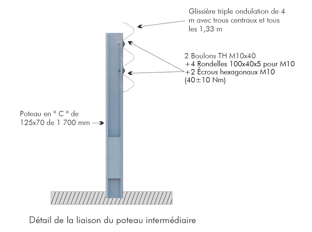| 1 | Glissière triple ondulation de 4 m avec trous centraux et tous les 1,33 m | 1 |