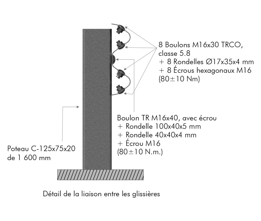 | 2 | Poteau C-125x75x20 de 1 600 mm | 2 |