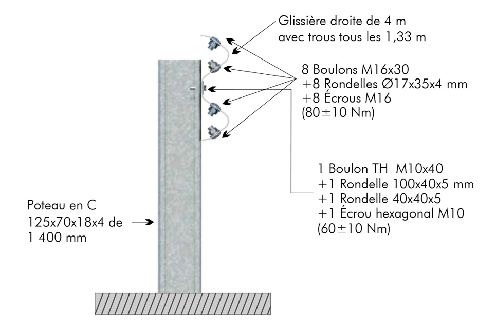 | 2 | Poteau en « C » de 125x70x18x4 de 1 400 mm | 1 |