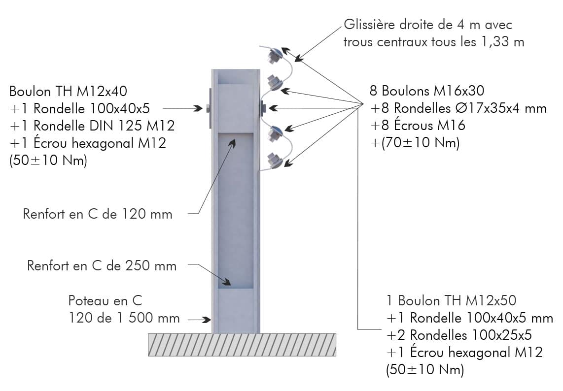 | 2 | Poteau en C-120 de 1 500 mm avec trous latérales | 1 |