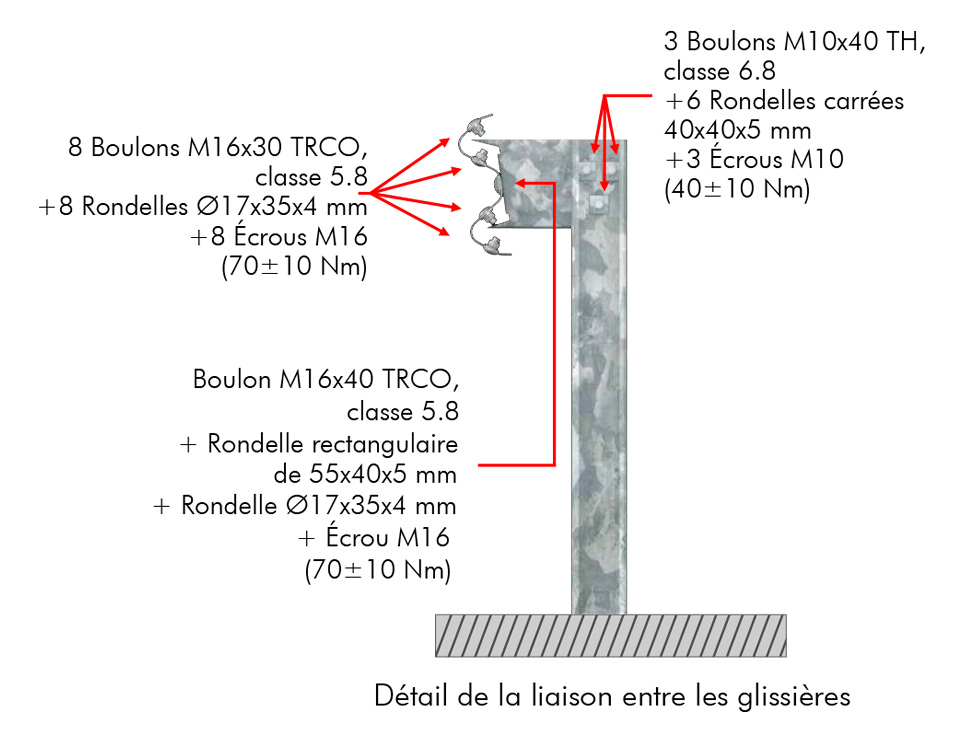 Glissière métallique simple pour accotement. Dispositif composé d’une glissière à double ondulation, écarteur et poteaux en « C » espacés de 2 mètres.