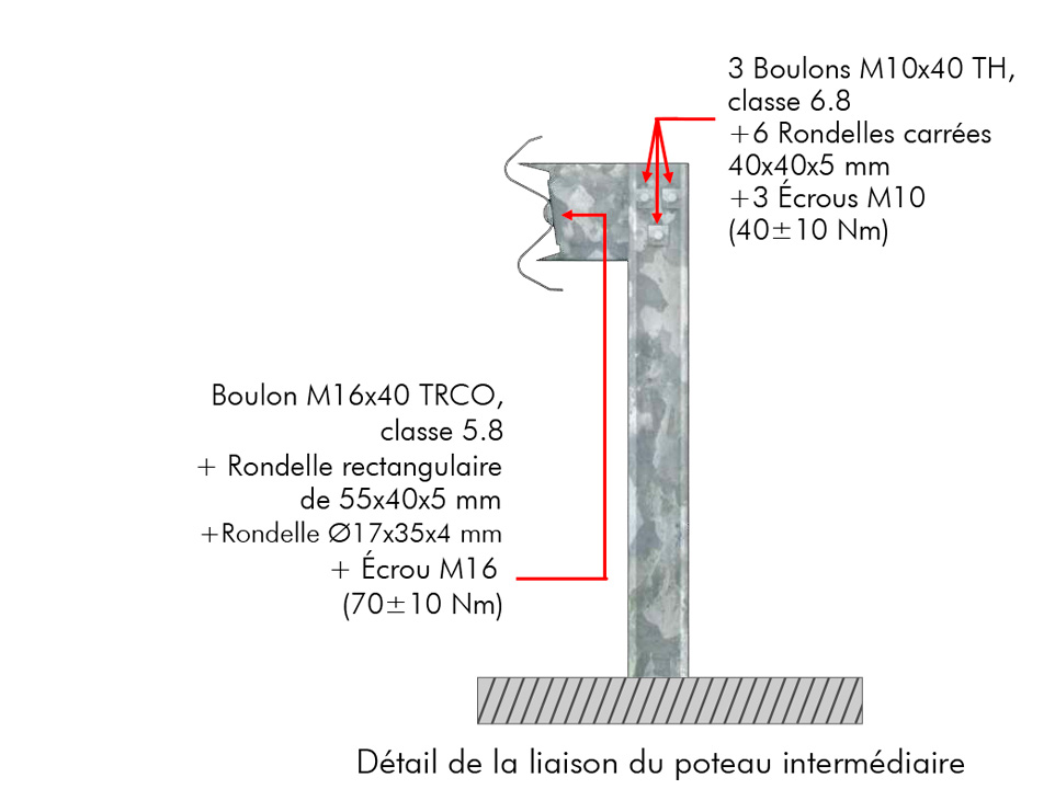 Niveau de retenue N2 Largeur de fonctionnement (W) W5 Sévérité de choc A Déflexion dynamique (D) 1,1 m