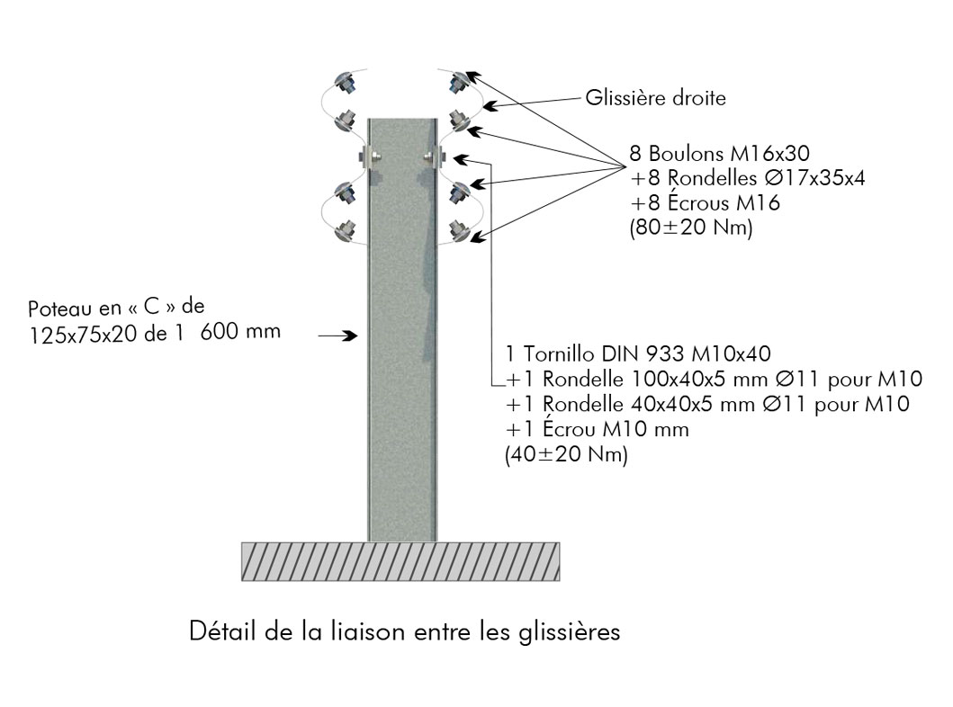 | 2 | Poteau en « C » de 125x75x20 de 1 600 mm | 1 |